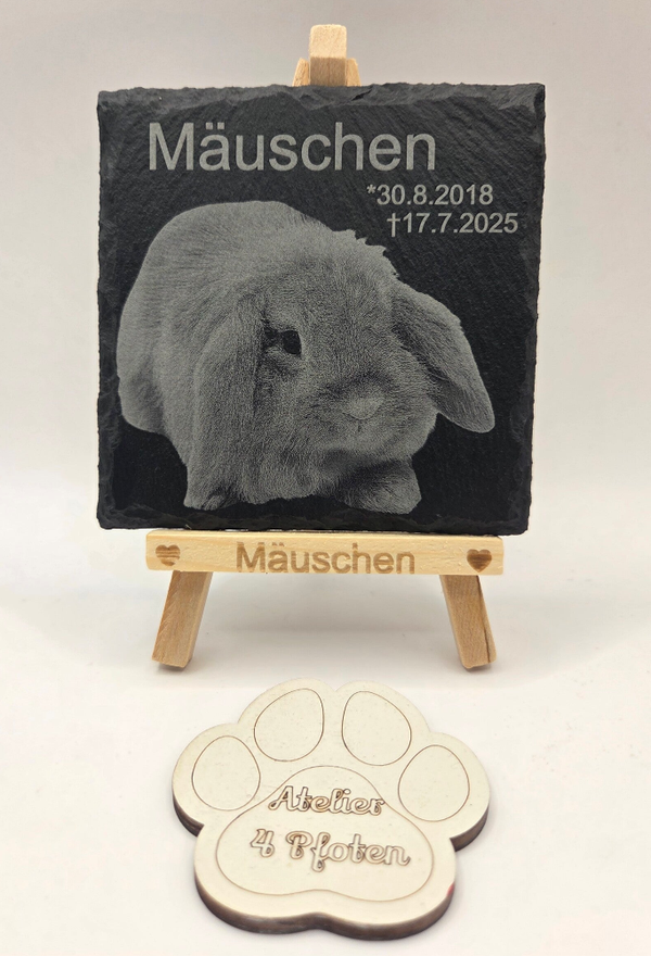Haustiergrabplatte 10 x 10 cm / Schiefer mit Foto / Bild