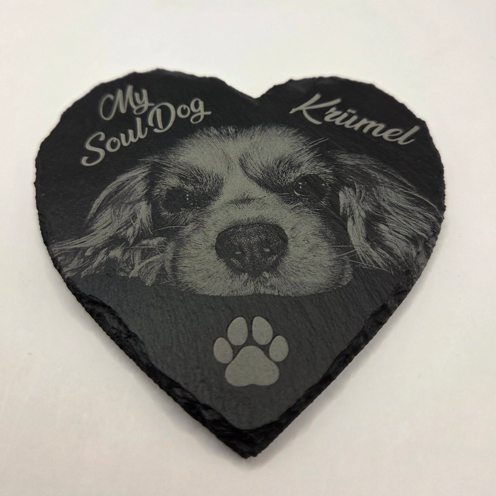 Haustiergrabplatte Herz / Schiefer mit Foto / Bild