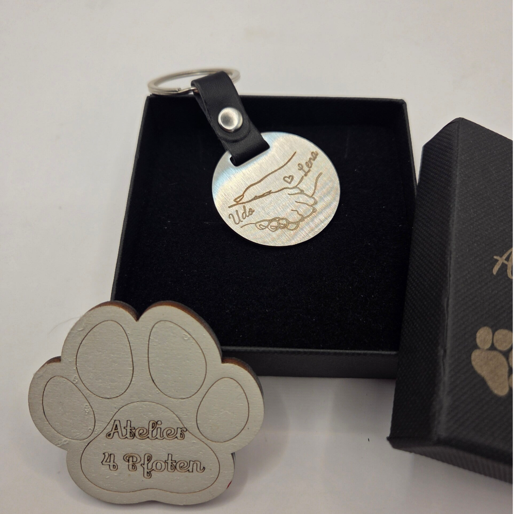 Schlüsselanhänger Edelstahl Pfote u. Hand personalisierbar