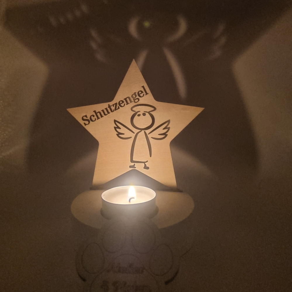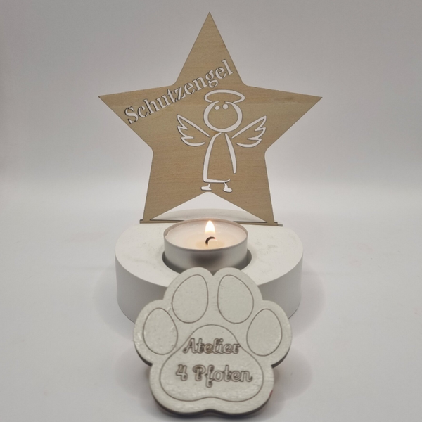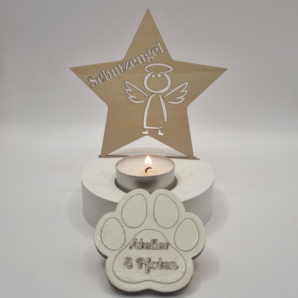 Schutzengel Lichtspiel Stern mit Sockel Teelichthalter