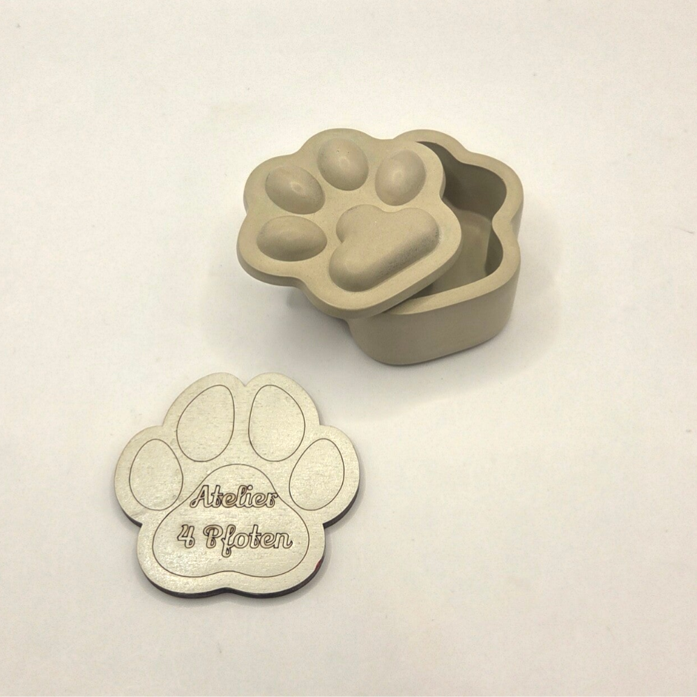 In dieser Dose kannst du zum Beispiel Erinnerungen an deine Fellnase aufbewahren wie Fell, Milchzähne, Marke oder was auch immer dir einfällt was du verwahren möchtest.