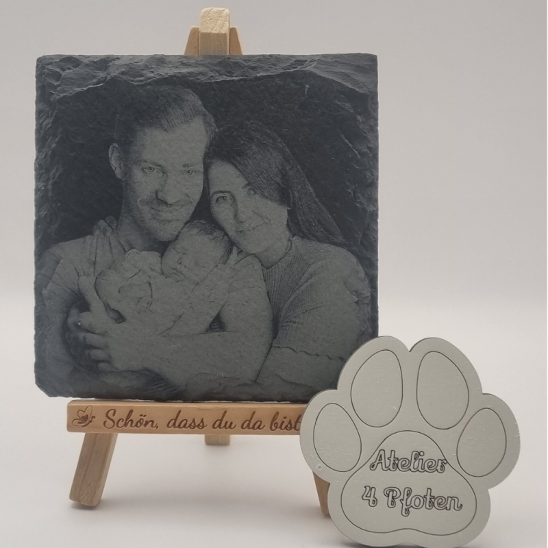 B Ware Schieferplatte 10 x 10 cm / mit Foto / Bild