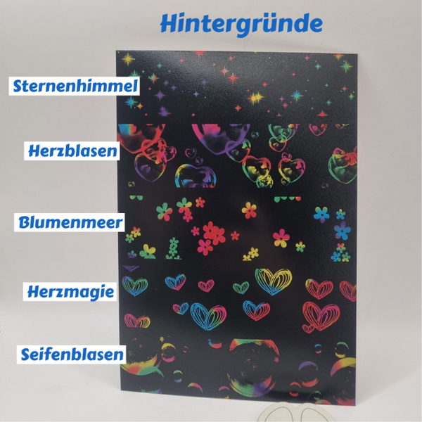 Kombiniere dein Bild mit 5 verschiedenen Hintergründen oder verzichte auf den Hintergrund.