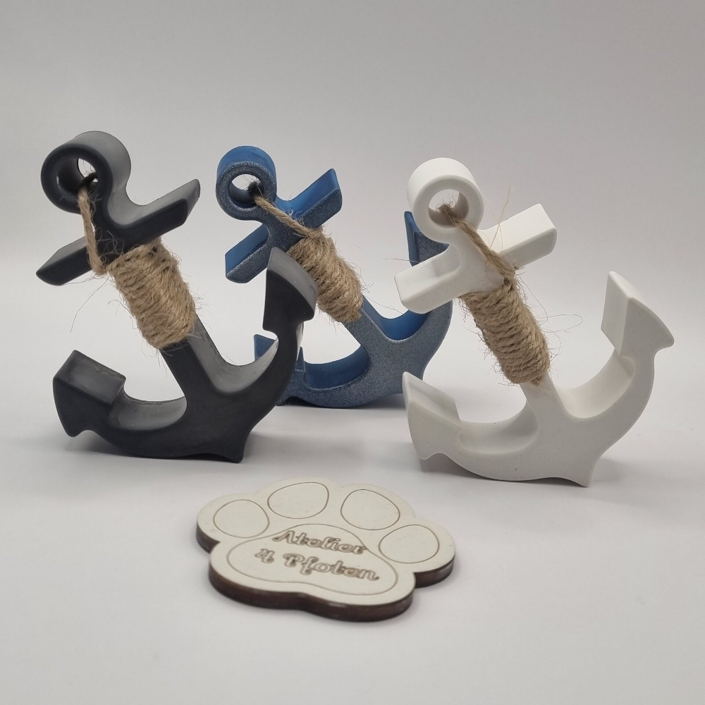 Jeder Anker ist ca. 10 cm hoch und 7,7 cm breit – kompakt genug für kleine Plätze, aber wirkungsvoll in der Wirkung. Das hochwertige Keramikmaterial sorgt für Stabilität und ein angenehmes Gewicht in der Hand.