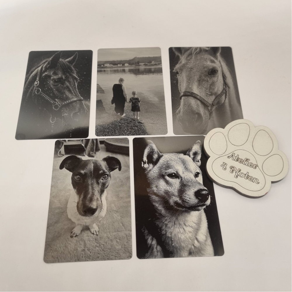 Halte deine schönsten Erinnerungen immer bei dir – ob das Lieblingsfoto deiner Fellnase, ein geliebter Mensch oder ein besonderer Augenblick. Unsere Aluminiumkarten in praktischer Visitenkartengröße passen perfekt ins Portemonnaie und begleiten dich überall hin.