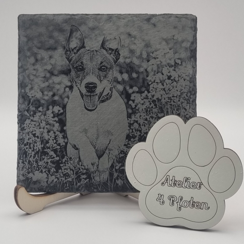 Schieferplatte 10x10 cm mit Foto / Bild grade Kanten