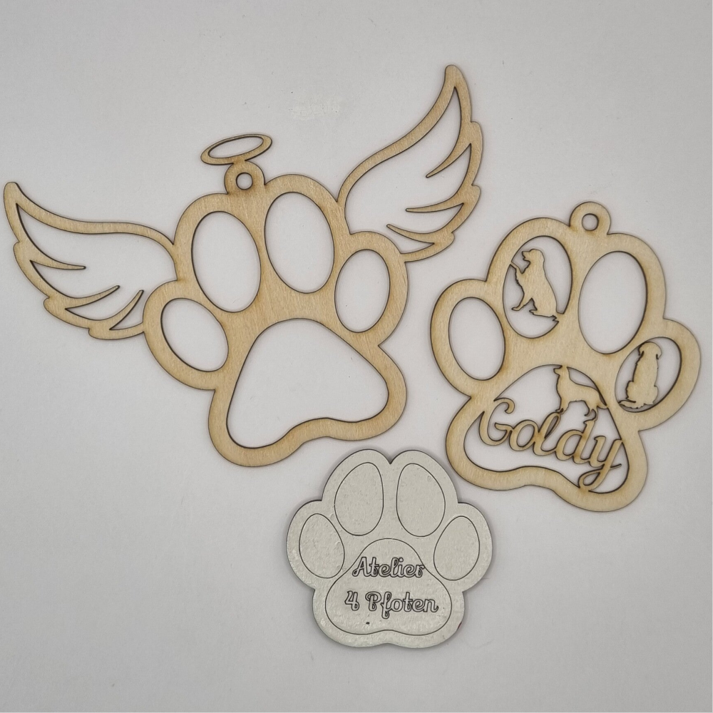 Pfotenanhänger Golden Retriever personalisiert mit Flügel