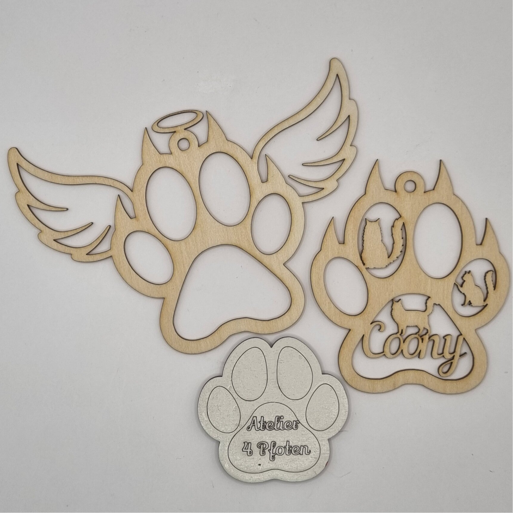 Pfotenanhänger Maine Coon Katze personalisiert mit Flügel