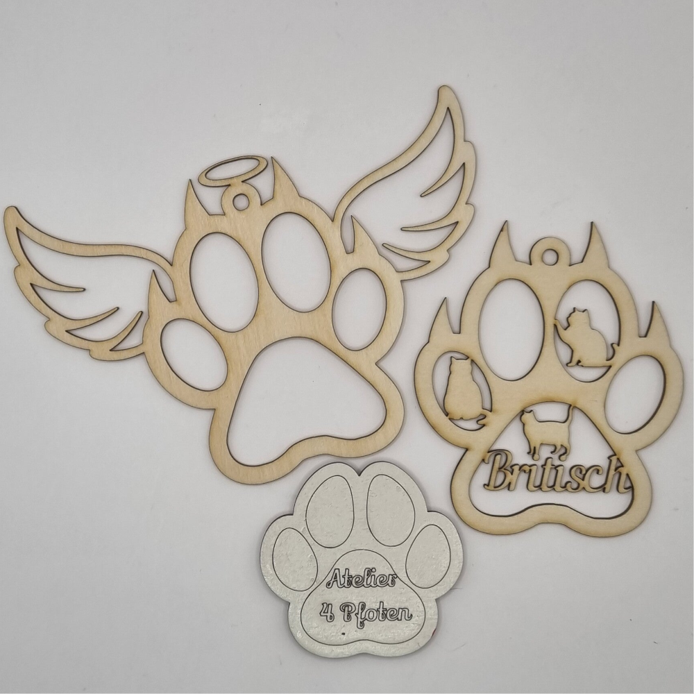 Pfotenanhänger Britisch Kurzhaar Katze personalisiert mit Flügel