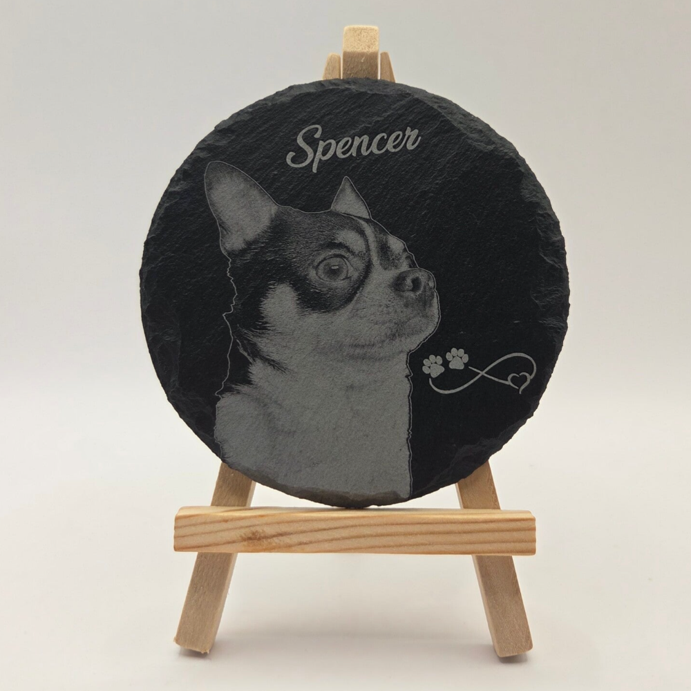 Haustiergrabplatte 10 cm Rund / Schiefer mit Foto / Bild