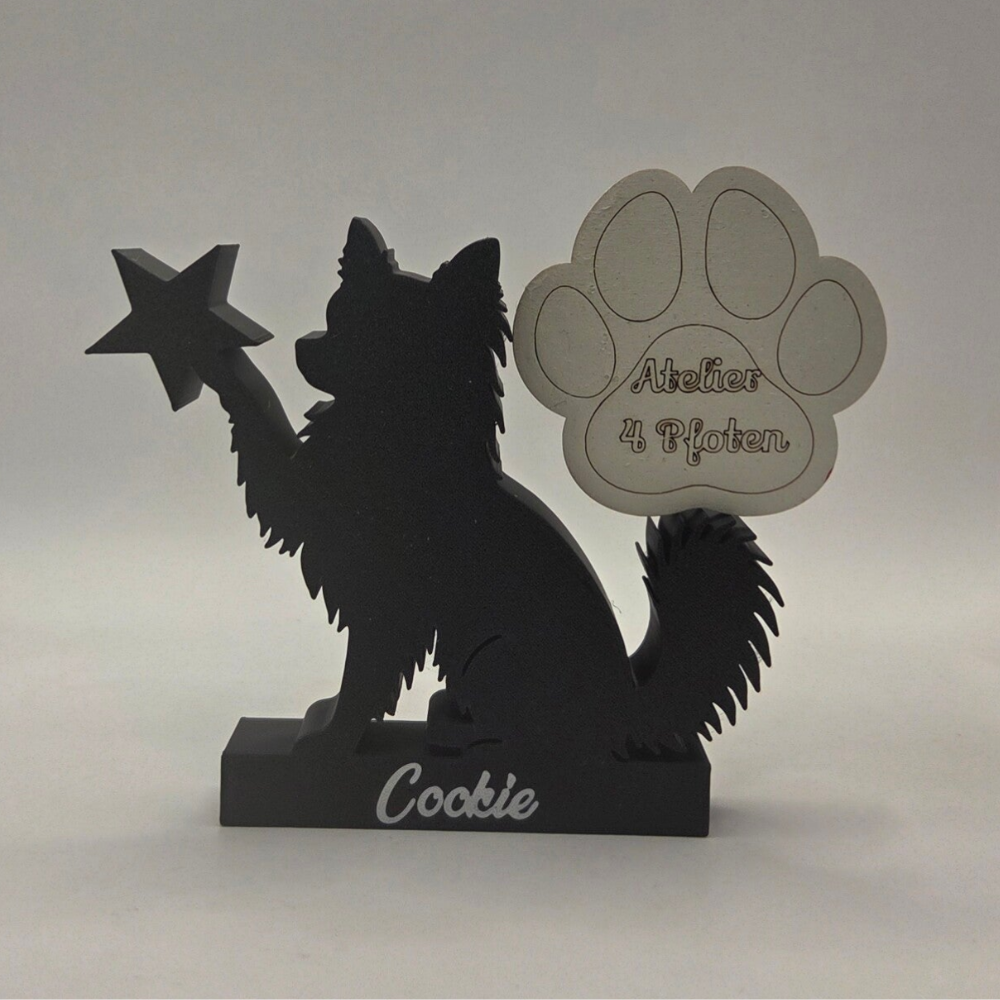 Tier-Silhouette Personalisiert Größe M Pfote nach oben / Stern 3D