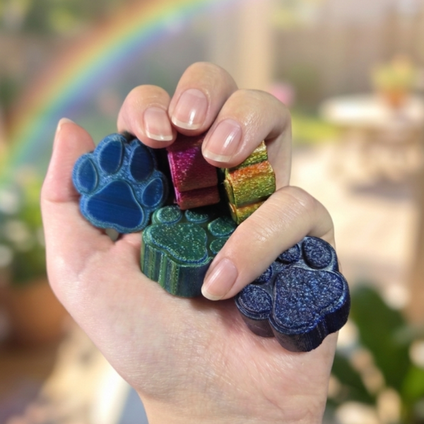 Jede Pfote wird im 3D-Druckverfahren gefertigt. Kleine Unterschiede im Farbverlauf oder in der Oberfläche sind normal und machen jede Pfote zu einem einzigartigen Einzelstück.