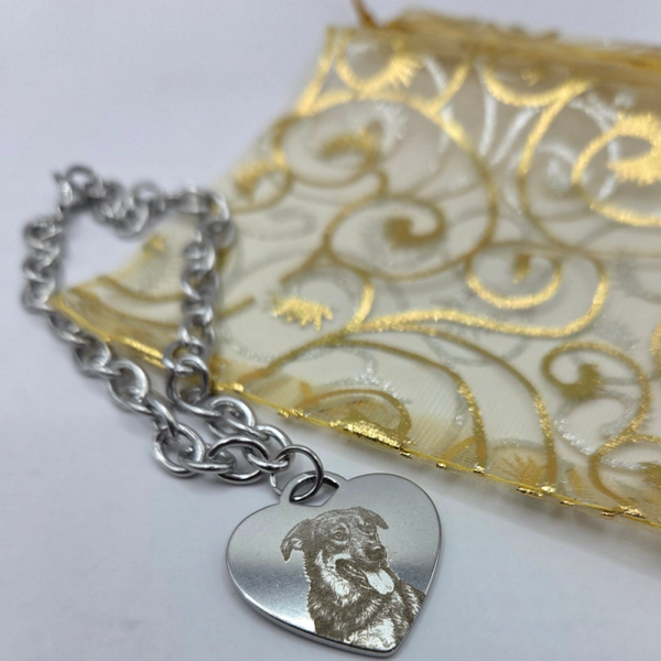 Das hochwertige Edelstahl-Armband hat eine angenehme Länge von 20 cm und wird durch einen Herzanhänger (ca. 2 x 2 cm) ergänzt – der Mittelpunkt deiner ganz persönlichen Erinnerung.