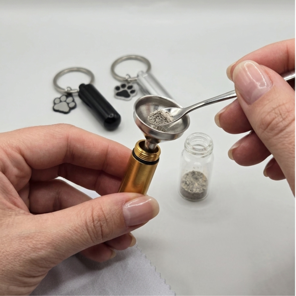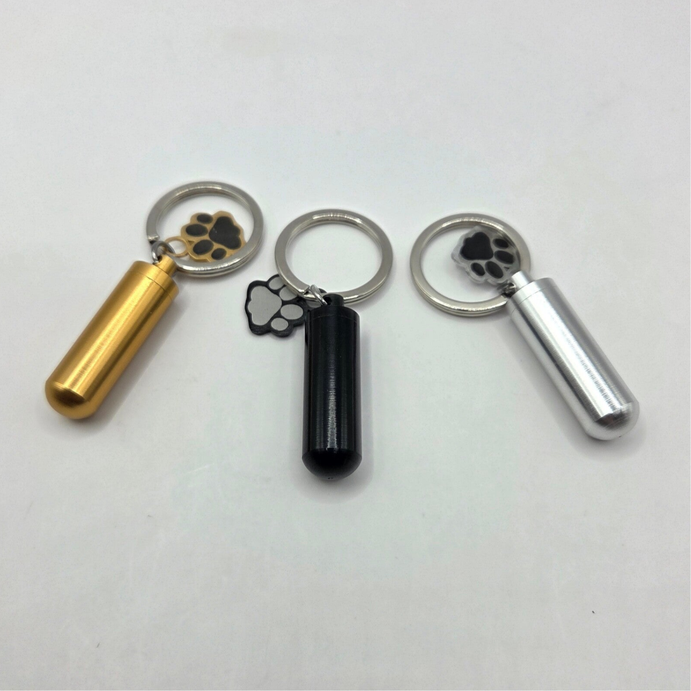 Mit diesem besonderen Schlüsselanhänger aus hochwertigem Edelstahl trägst du ein Stück deiner Fellnase immer bei dir – nah am Herzen, jeden Tag. Der kleine Zylinder bietet Platz für persönliche Erinnerungen, wie Asche oder etwas Fell, und wird so zu einem stillen Begleiter voller Bedeutung.